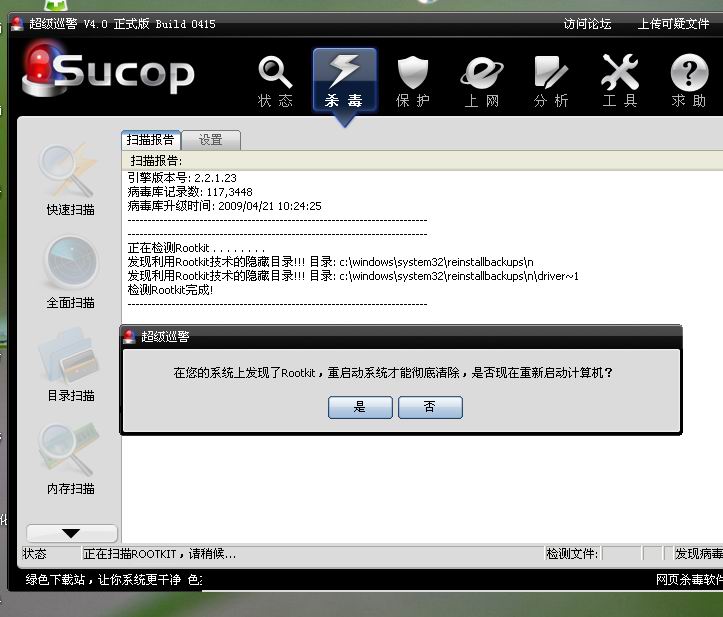 但是利用ROOTKIT技术的隐藏文件瑞星就检测不到呀