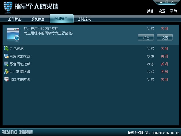 昨天机子老是弹ARP拦截,一直没理,今天开机发现瑞星防火墙自动关闭所有监控了,无法更改,跪求一助~~~~