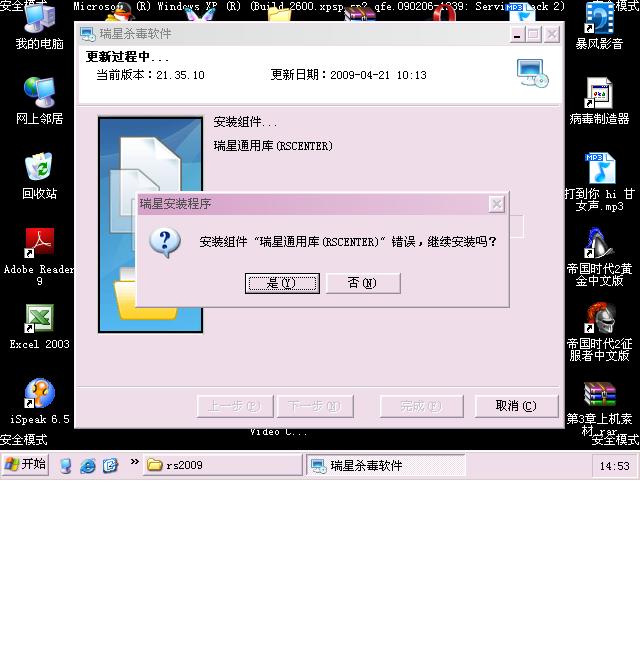 后来,我进入了安全模式,再安装2009,终于不蓝屏了,但是出现以下情况。