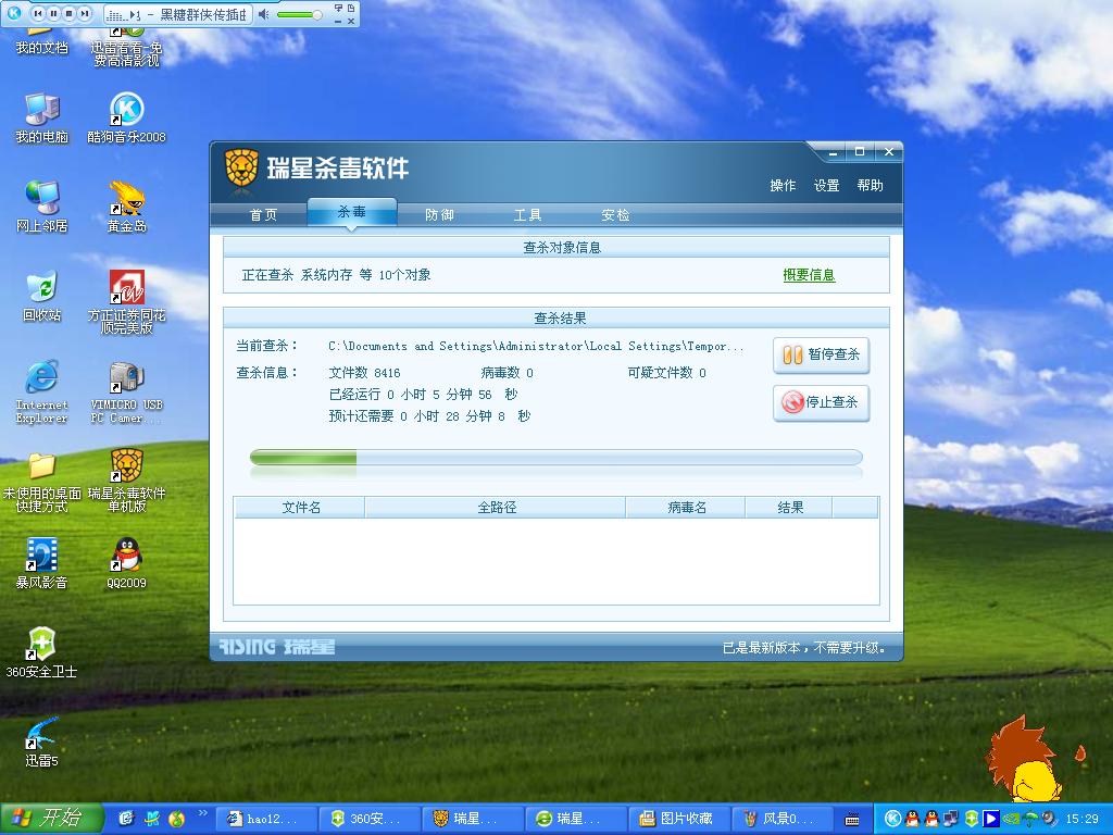 预测时间会随着杀毒过程而调整,且瑞星有智能提速功能,建议第一次要全盘查杀,以后再杀毒就快了。