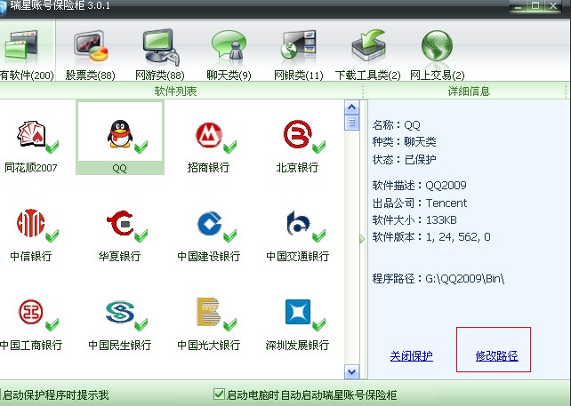 QQ2008版在 保险柜名单中,启动程序,可 保护。最近几天 把QQ 升级到 09 版,发现 09版QQ 未在 保险柜中,不知 是 保险柜 内的QQ版本未升级,还是