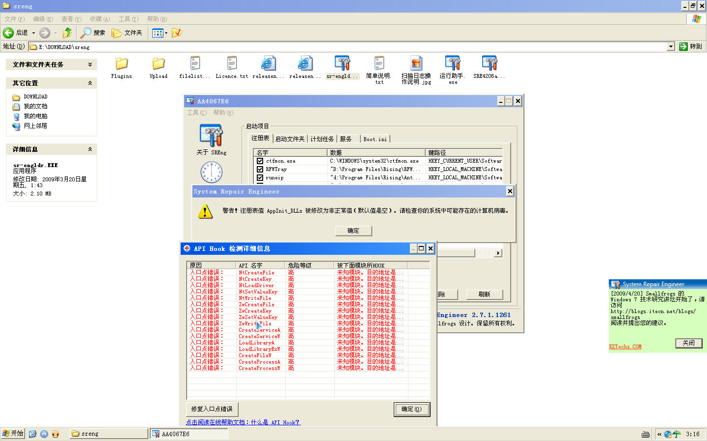 那什么入口点错误是SRENG工具提示给懂系统知识的人看的,你不要管它。