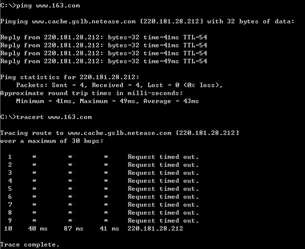 如果 tracert 失败,先自己测试一下,可以使用命令输出来帮助确定哪个中介路由器转发失败或耗时太多.