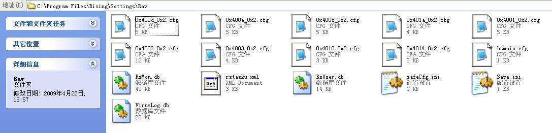 我的瑞星是装在E盘的,现在突然发现出现了C:\Program Files\Rising\Settings\Rav文件夹,里面的文件如下图。从瑞星2006开始,一直都没有这个文件夹,请问这是怎么回事啊?这个文件夹能删除吗?