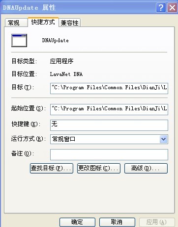 目标:"C:\Program Files\Common Files\DianJi\LavaNet DNA\DNAUpdate.exe"