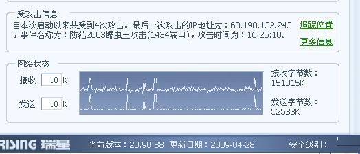 我原来一直用的08版的瑞星个人防火墙,平常按提示升级,但我从来没有发现它能拦截到什么,昨天我把它删除了,重新用08的安装一次,然后手动升级,结果发现了一个很不可思议的事情.升级的时候提示从旧版本升级到新版本(20.90.88),对版本我还是比较熟悉,我记忆的新版本号该是21开头了,可是我升级 完了打开,果真是20.90.88,我以为还要再次升级,于是点智能升级,提示已经是最新了.可是我的版本明明还是20开头的啊,请看我的附件抓图.而且,这个版本倒还好用,时不时就会有提示:禁止****ping入,拦截蠕虫攻击.....,似乎比原先的新的版本还有效.这是怎么回事?
