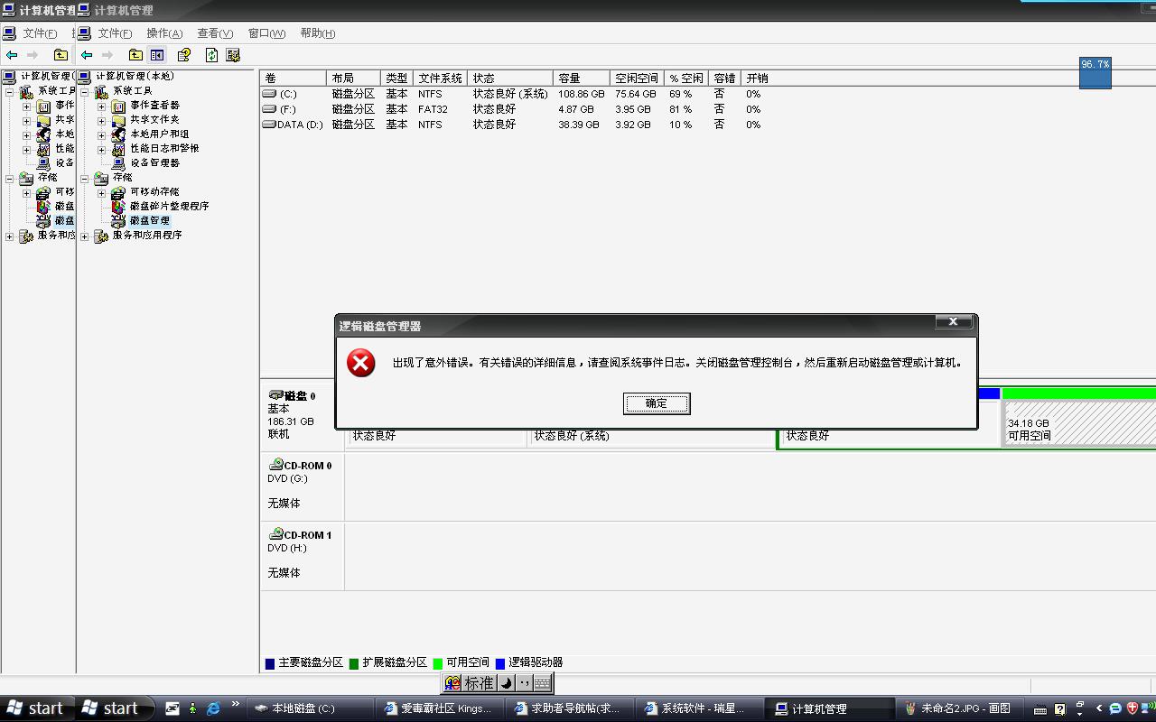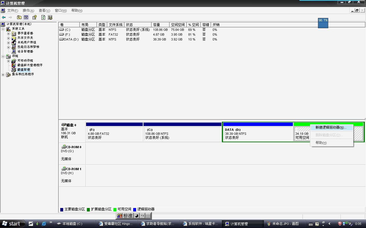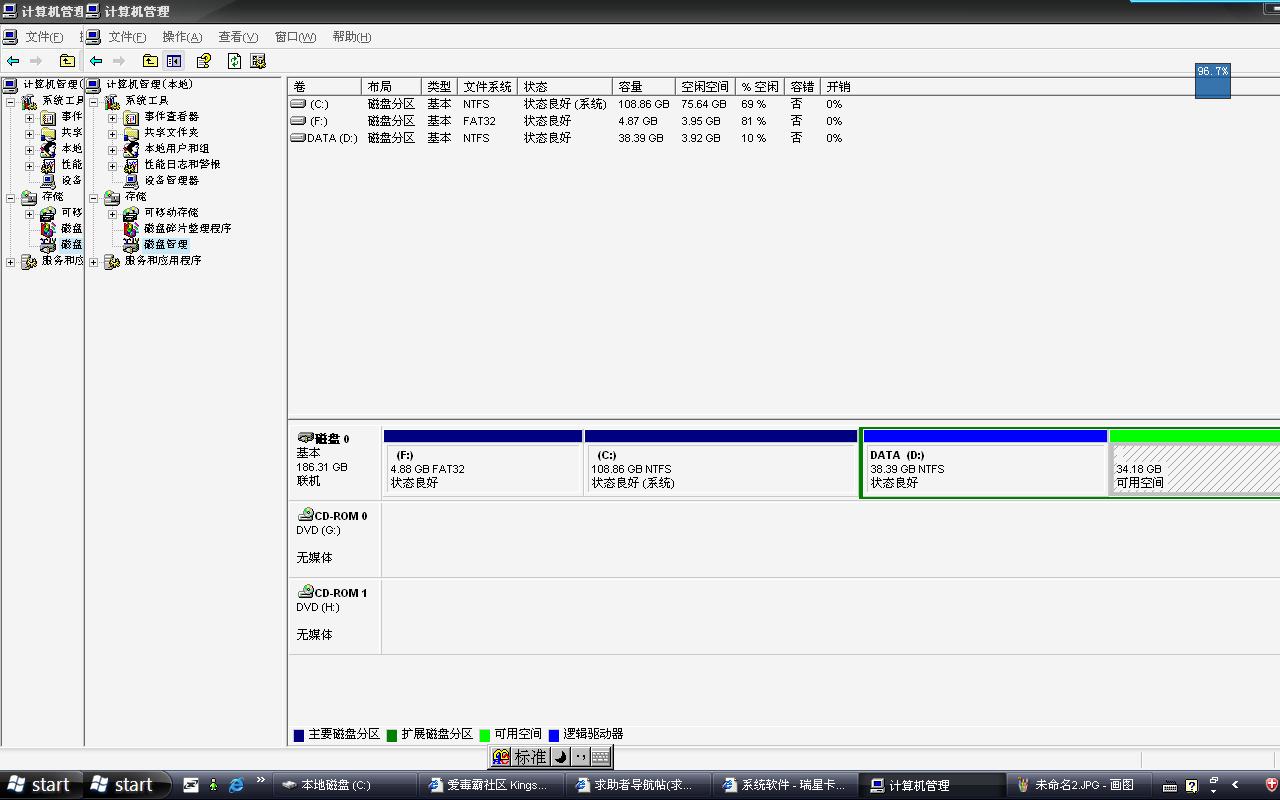 这几天出现E盘盘符找不到的情况..我用"计算机管理"---"磁盘管理"能看到E盘的空间...如图