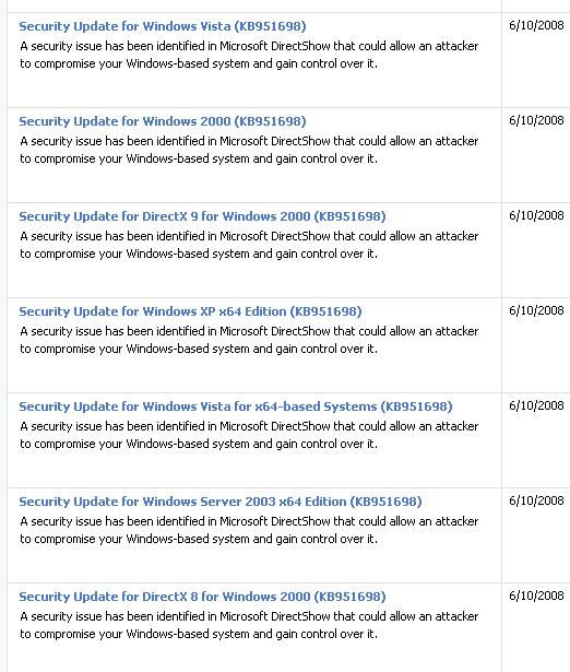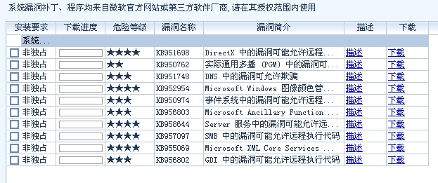 例如我点第一个漏洞KB951698想手动更新下载,然后点的描述,然后把“KB951698”在微软网站上查找下载,然后出来好多项,但是我不知道下载哪个呀?