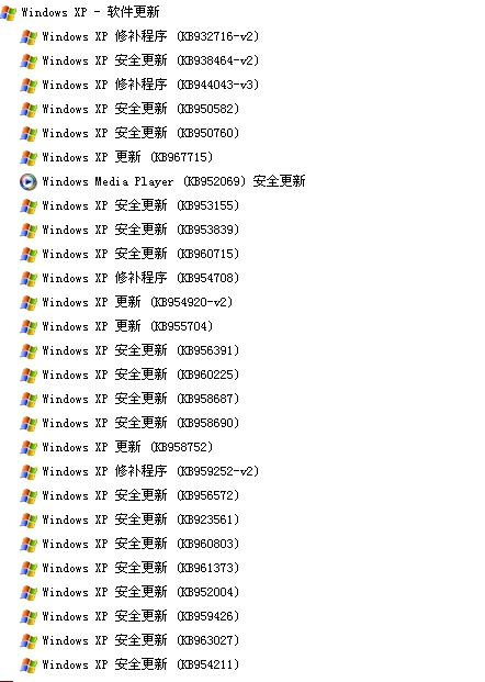 从控制面版查到的更新全部是这个样子的,但是看日期也有以前的,我也不知道是不是跟我这回的一样,不过跟这回补丁对照,好象没有,大家帮帮忙,我是新手,不懂的说,谢谢了