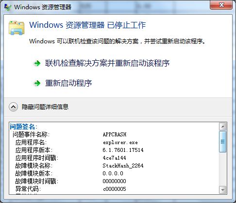 首页 » 技术交流区 » 系统软件 » [已解决]Windows资源管理器停止工作!