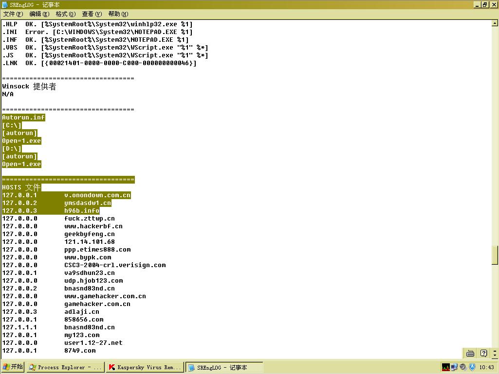 SRENG反而没被感染,倒是俺的ED等删除工具被感染(打包见VIRUS.ZIP)