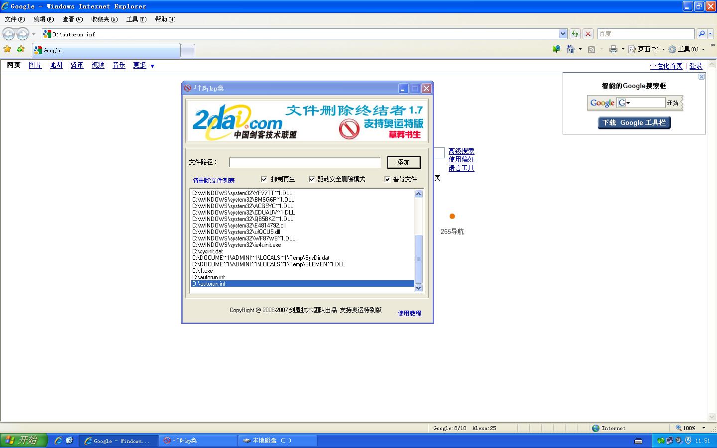 IE被恶意改启动即连接www.ff2000.com,查看注册表没找到与IE相关的键值被改,且IE工具的internet选项界面也显示初始加载为about:blank,瑞星全盘查杀却不报告异常,但启动windows系统即将显示“欢迎使用”画面之前会显示一带几个乱码的窗口,且要点击“确认”才能进入系统,很明显是系统被强行植入了恶意软体,目前所有网上IE修改工具均对其不能彻底清除,瑞星的开机查杀虽可比该恶意软件先启动一步,但也不查杀不出来