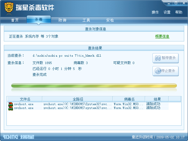 电脑又中病毒了!老是死机,用瑞星杀,老是杀不完,重起又有!