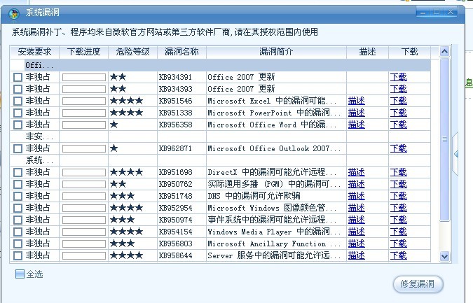 楼上的请试用Windows Update进行扫描,以Windows Update为准.如果Windows Update检测到没有漏洞,建议无视卡卡的提示