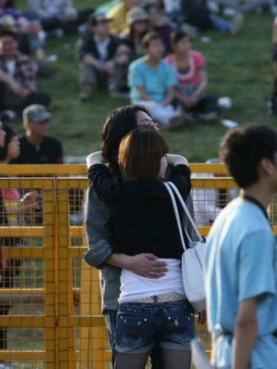 因为安全问题,组委会禁止1米2以下的儿童进场,但由于高晓松的特殊关系,女儿顺利进场。之前有网友爆料,在与阿朵分手之后,高晓松找了个小女友,没多久便在08年为他生下一女儿,并传已经秘密闪婚。高晓松带着女儿跟妻子一家人享受天伦之乐,在与娇妻细细聆听音乐情到浓时便大方接吻,羡煞旁人。妻子更是微微的靠在高晓松身边,一副小鸟依人的样子。不久,高晓松就被身旁的观众认了出来,被要求合影。在听完旅行团乐队的演唱之后,高晓松一家人便离开了现场。