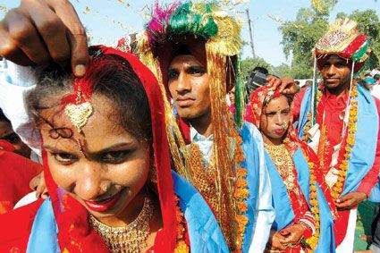 十多岁,本该是无忧无虑花一般的年纪,但在印度一些偏远村庄,女孩到了这个年纪就可能被迫出嫁,由此开始儿童新娘的悲惨命运。在每年5月的结婚旺季中,印度数百个地方都在举行大型的儿童集体婚礼。许多父母在为10岁左右的儿女张罗婚礼,有的新娘甚至还在吃奶。