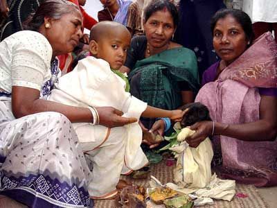 尚不会走路的婴儿便放在金属制的大托盘里,完成各种婚礼仪式。按照习俗,幼女婚后仍住在娘家。11、12岁后去夫家,此后的命运就由夫家决定。