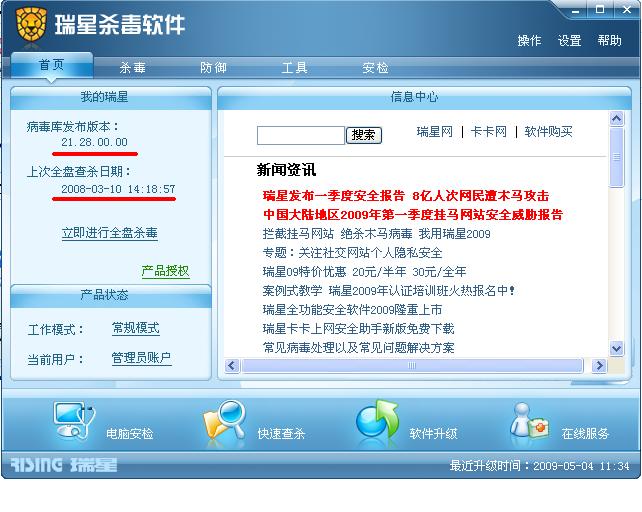 五一假期没有升级瑞星,今天一来升级瑞星出现如下: