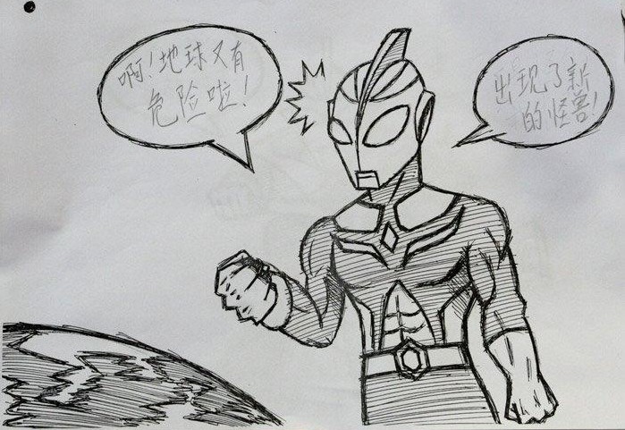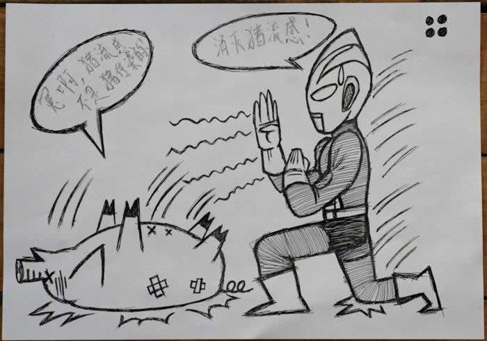 有才!网友上初中的儿子画的《奥特曼大战猪流感》