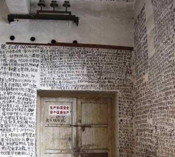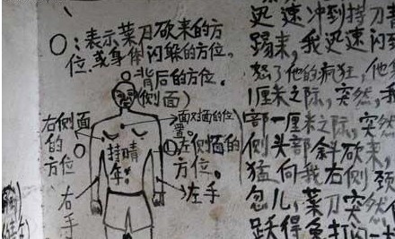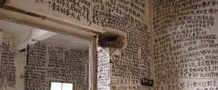 乞丐在废弃房屋墙上写武侠小说 图文并茂!