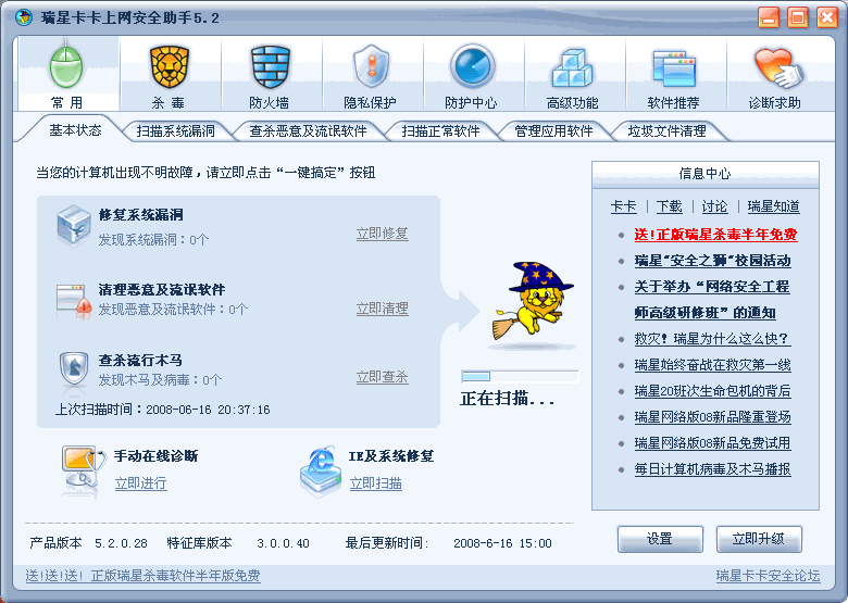 1.瑞星卡卡上网安全助手6.1版发布2.漏洞扫描功能改进