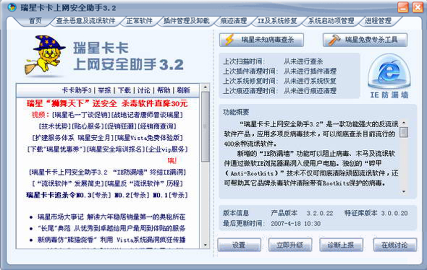 1.瑞星卡卡上网安全助手升级至3.1版,新增IE防漏墙功能