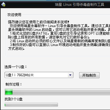Linux 引导杀毒盘制作工具可以正常的,制作完成.