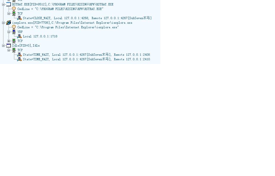 State=TIME_WAIT, Local 127.0.0.1:4267[SubSeven木马], Remote 127.0.0.1:2408