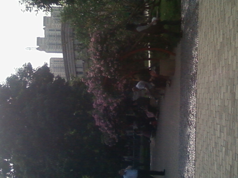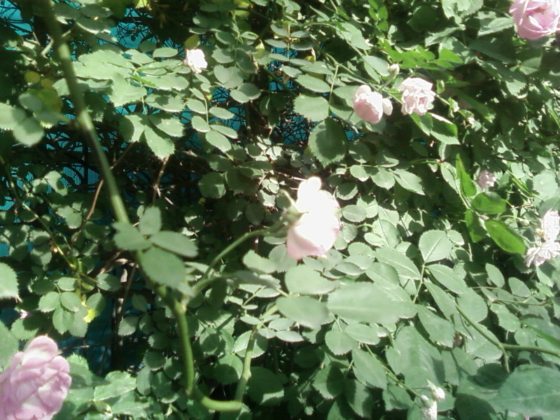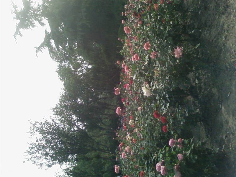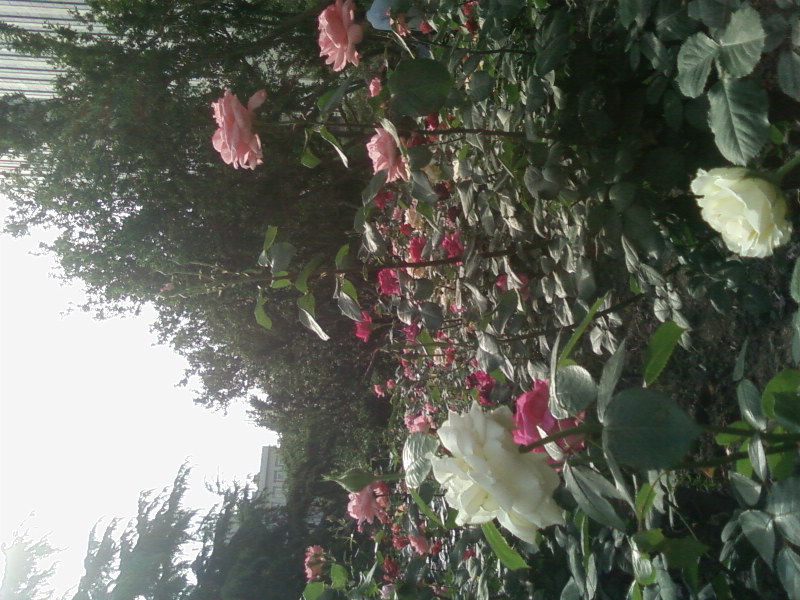 坐在蔷薇丛下的长椅一定很享受。可惜坐满了老人。