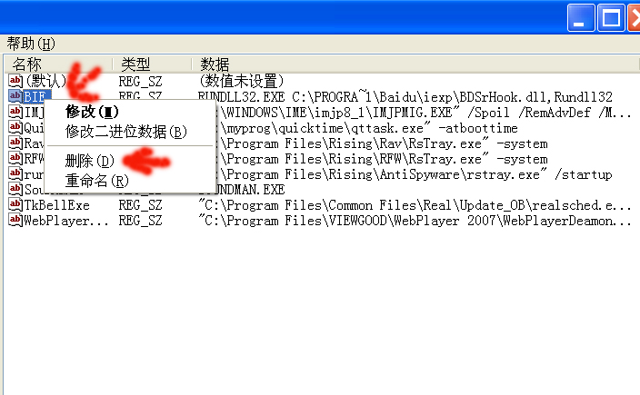 <BIE><RUNDLL32.EXE C:\PROGRA~1\Baidu\iexp\BDSrHook.dll,Rundll32>