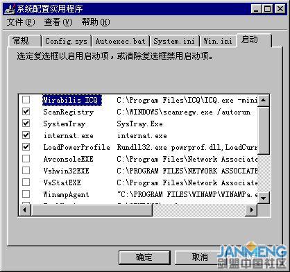 首先,查看system.ini、win.ini、启动组中的启动项目。由“开始->运行”,输入msconfig,运行Windows自带的“系统配置实用程序”。
