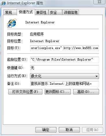 另外将新建的ie快捷方式的属性,也一并发上来看看。