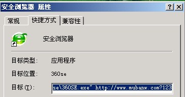 WWW.MUBANW.COM SRENG2和SYSCHECK2HE 360都没能发现异常,最后我在桌面上IE快捷方式属性-目标里发现了猫腻,如图: