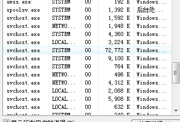 怎么会有那么多SVCHOST.EXE,启动项仍然加载太多,如果没有打印机,建议关闭SPOOLSV.EXE即PRINT服务