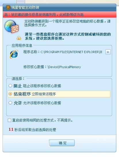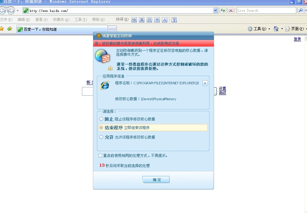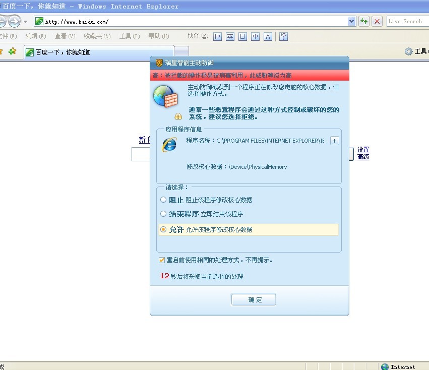 每天重开电脑IE时,瑞星都跳出这框框~~~~得,我看瑞星以后的发展就是:凡安装瑞星杀毒\防火墙程序的用户直接不准电脑开机得了~~~这样什么病啊毒啊永远也不会有~~~~