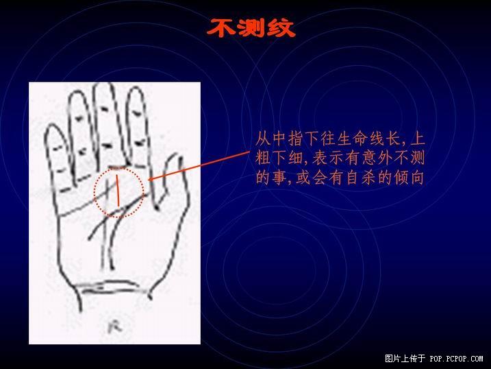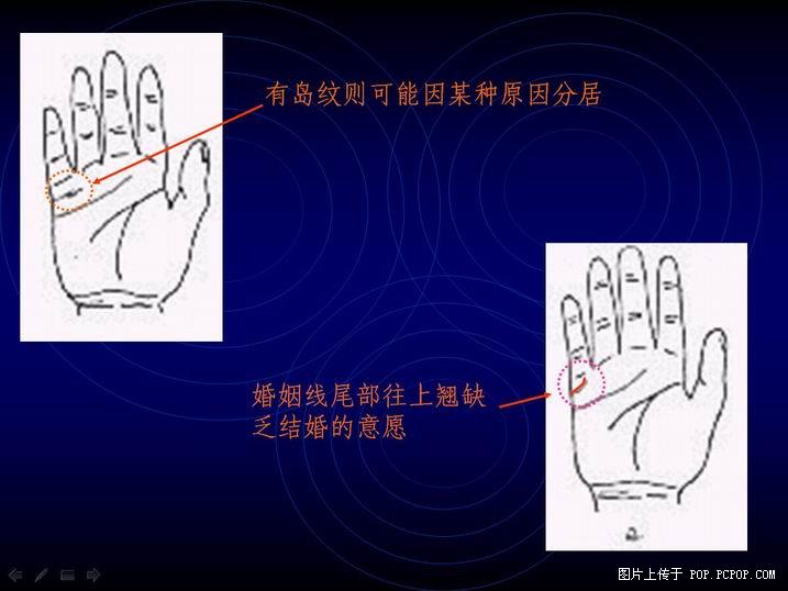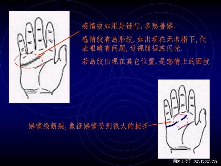 脑纹上有岛纹就表示思想不集中,记意力弱或脑部受挫.