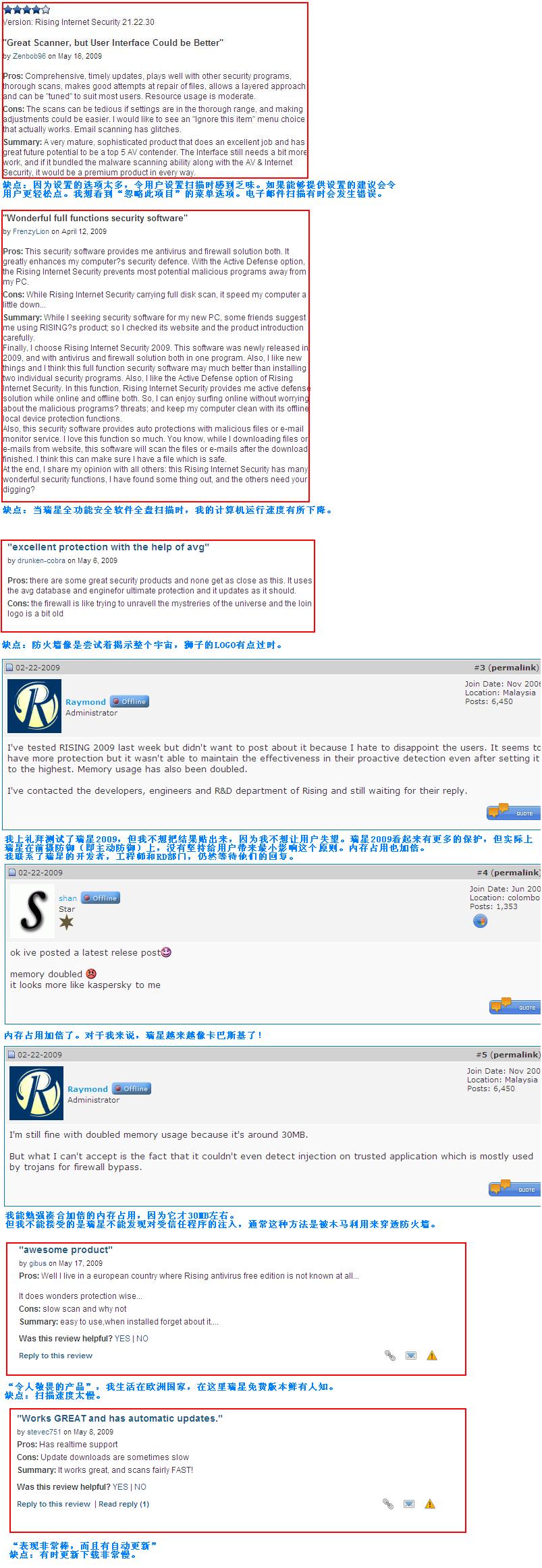 任何一款杀软,有理智的人都会给出个中肯的使用看法,这才是人性的本质!何况老外对国内杀软的恩怨也不了解,吹捧瑞星干嘛?