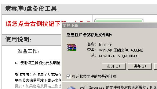 制作linux引导杀毒盘,需要下载文件到瑞星安装目录下,而后才可以制作。