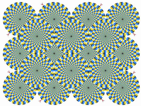 以下都是静止的图片。不过,你看到的这些静止的图片是不是在动呢?据心理医生说,图片与心理承受力有关,你的心理承受力越强,图片转动越慢。美国曾经以此作为犯罪嫌疑人的心理测试,他看到的图片竟然是高速旋转的!!