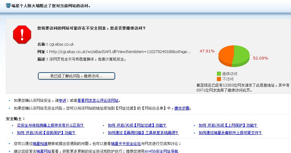 我是做eBay,最近我在进入eBay网站时,经常出现如下提示:您将要访问的网站可能存在不安全因素,您是否要继续访问?