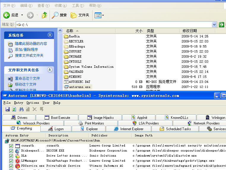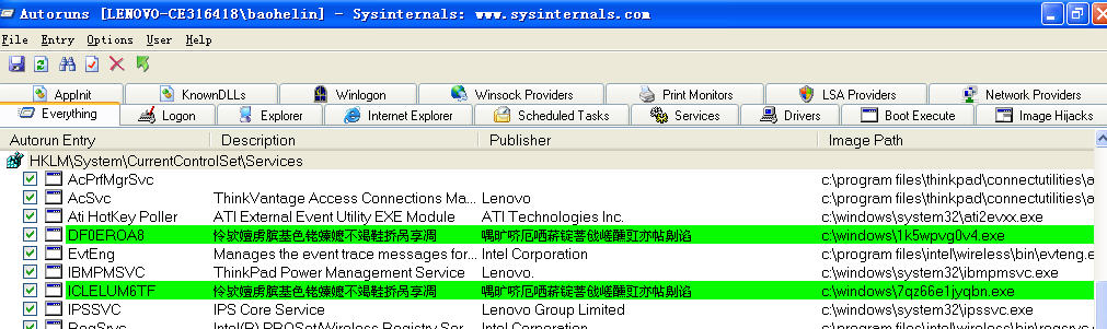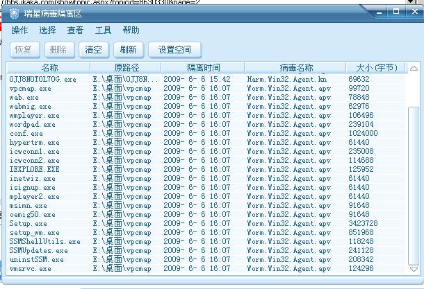 4、说明:中此毒后,注册表被篡改的部位很多。手工恢复非常麻烦。如果有系统备份或整个硬盘备份,最好用备份恢复系统。