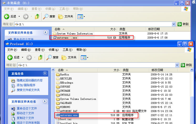 (2)非系统分区的.exe:被病毒感染,文件增大,MD5改变。