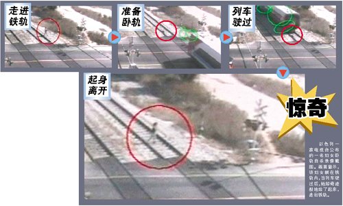 这段录像是铁道附近的一个监视器5月31日拍下的。录像显示,这名妇女平静地走入火车轨道,躺在了轨道中间。