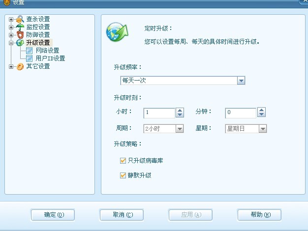该怎么设置自动升级啊 一般升级什么东西 是不是只升级病毒库就可以了 其他的不用升级?