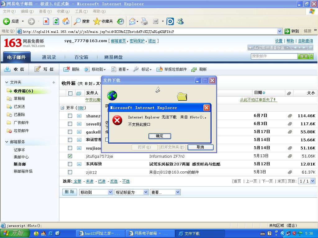 我的网易163邮箱的东西下载不了,提示Internet Explorer 无法下载 来自fgot 0:, 不支持接口