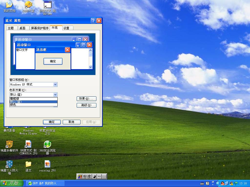 桌面上右键-属性-外观,颜色方案,设置为经典,不要使用高对比度