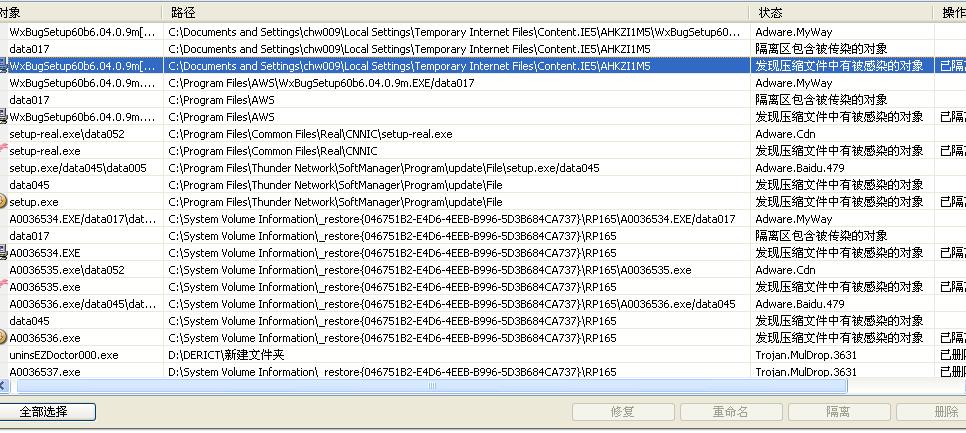 用Dr.web蜘蛛扫出很多病毒出来哦,为什么我平时用瑞星杀毒的时候杀不出来呢。:kaka12: