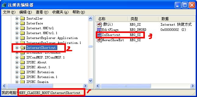 请问:有必要么?为了桌面整洁,还是别的?如果一定要弄,进入注册表编辑器,按照1处的注册表路径找到2处的注册表项单击,再把3处的注册表值项删除(之前请先备份2处的注册表项),完成后关闭注册表编辑器,最后重启电脑即可: