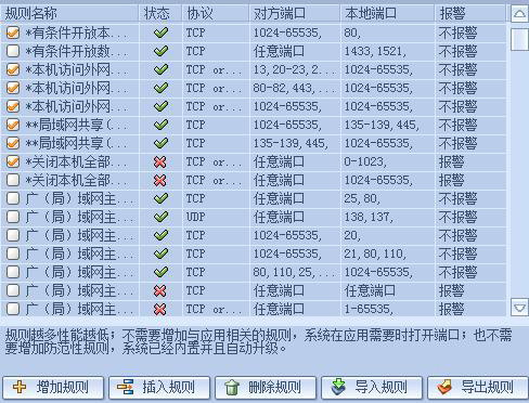 同样的,还是在“详细设置”中的“IP规则”处,早在测试版本时本人就提过,但是瑞星方面还是死不悔改。当用户添加的IP规则较多时,因为瑞星09版保持取消了“IP规则的上下连移”和“IP规的插入”这两项功能,使得用户在编辑IP规则时相当不便,效率大大降低。。。