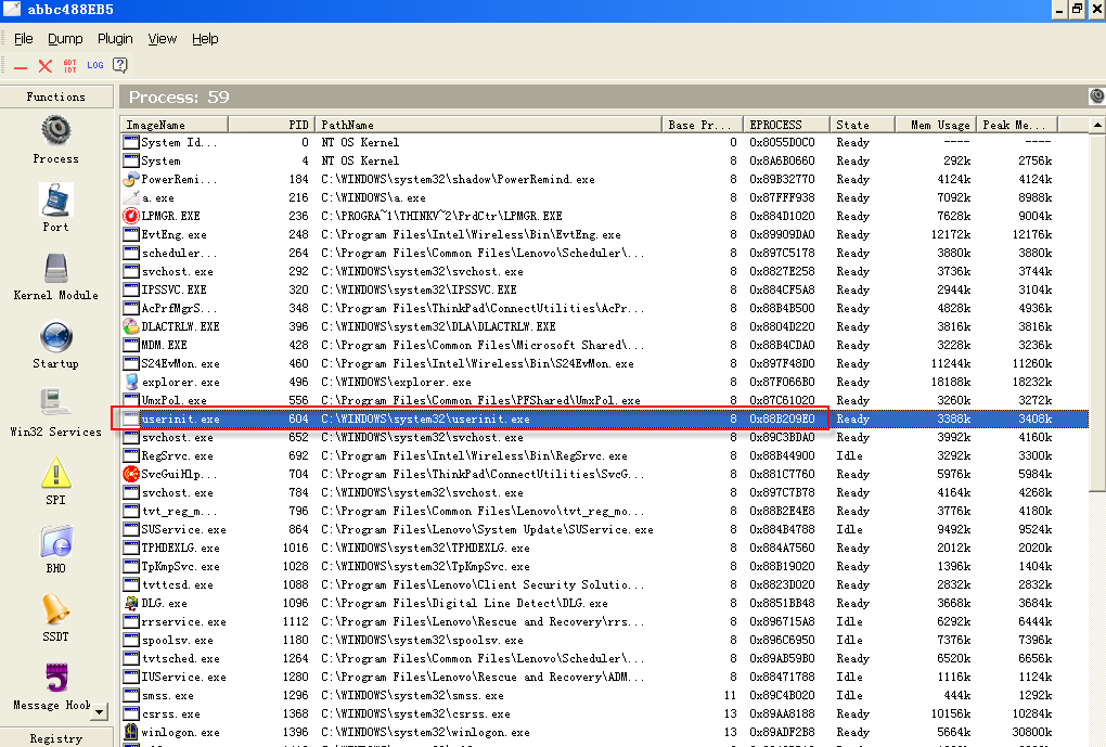 4、利用系统程序userinit.exe搞鬼(不要删除这个userinit.exe哦。结束其进程即可。)
